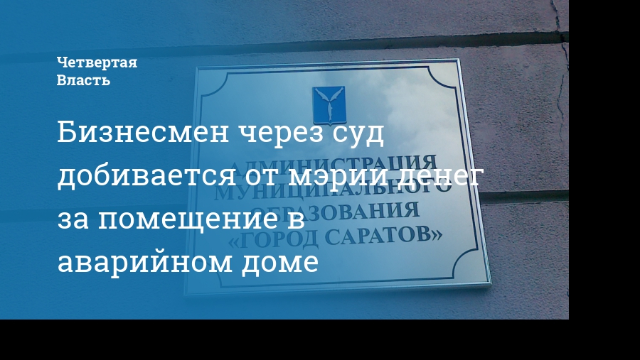 Саратовский бизнесмен Александр Журавлев через суд добивается от городской администрации компенсации за помещение в доме, признанном аварийным и непригодным для проживания. Об этом сообщает пресс-служба Арбитражного суда Саратовской области.