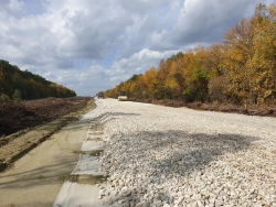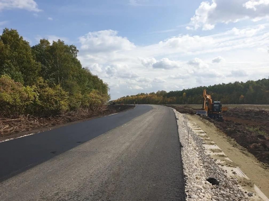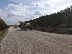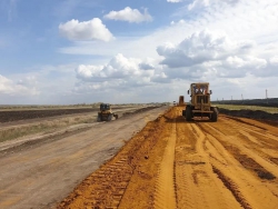 В настоящее время работы ведутся на участке протяженностью 12 километров, из них на семи уже уложено асфальтовое покрытие. К укладке асфальта подготовлен один километр дороги в щебне. На четырех километрах дорожное полотно разобрано и засыпано первым слоем песка. Параллельно ведется укатка покрытия.