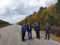 На участке, который осмотрел глава Петровского района, задействовано 58 единиц спецтехники и 70 специалистов. О результатах контрольного выезда Денис Фадеев и руководитель подрядной организации ООО «Дорожник» Арутюн Акопян проинформировали министра Николая Чурикова, который, проанализировав полученные данные, поставил задачу активизировать работы по укладке щебня до наступления неблагоприятных погодных условий.
