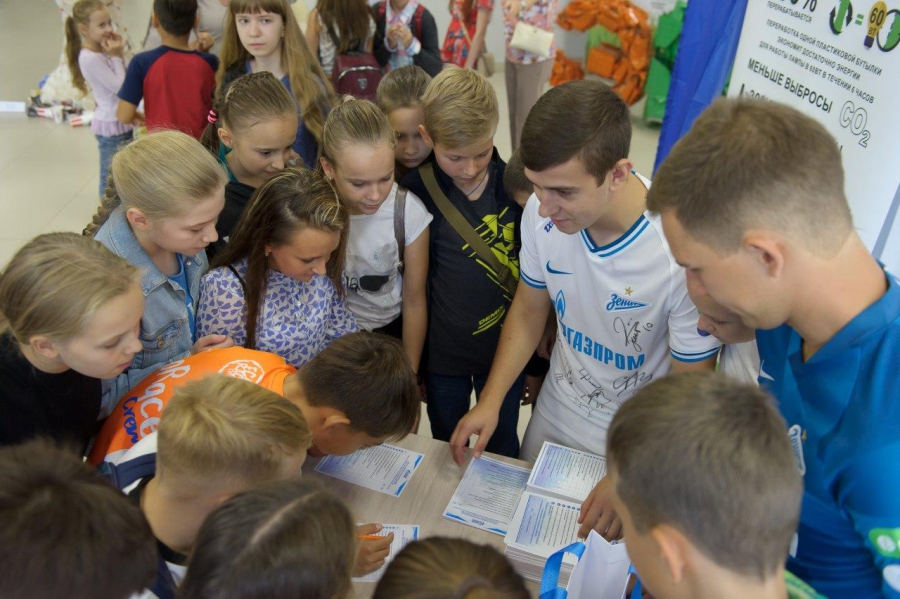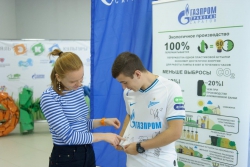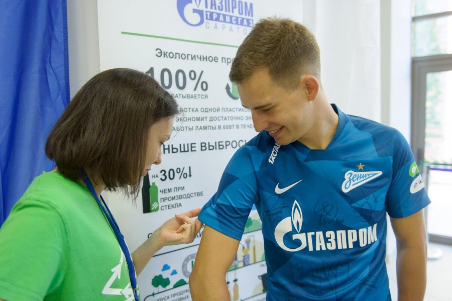 Работники ООО «Газпром трансгаз Саратов» провели анкетирование и викторину, посвященные грамотному ресурсосбережению, вручили посетителям памятки о 10 простых правилах энергосбережения, а также поделились личным опытом в экономии энергии и раздельном сборе отходов. Помимо этого, специалисты открыли секреты производства футбольной формы ФК «Зенит», которая разыгрывалась в качестве главного приза на экофестивале. Спецодежда футболистов производится из переработанного полиэстера, для создания одного комплекта используется 16 пластиковых бутылок.