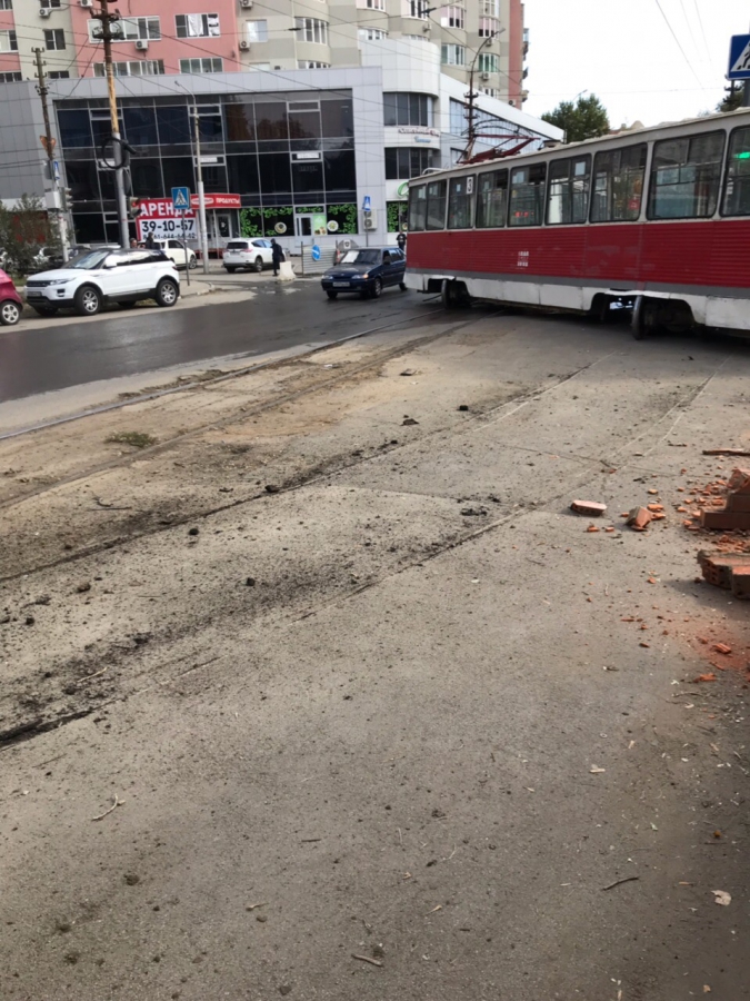 Сегодня, 26 сентября, в центре Саратова трамвай сошел с рельсов и протаранил забор Детского парка. Об этом сообщили очевидцы в социальных сетях.