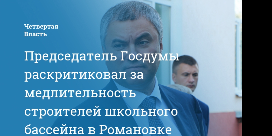 Председатель Госдумы раскритиковал за медлительность строителей школьного бассейна в Романовке
