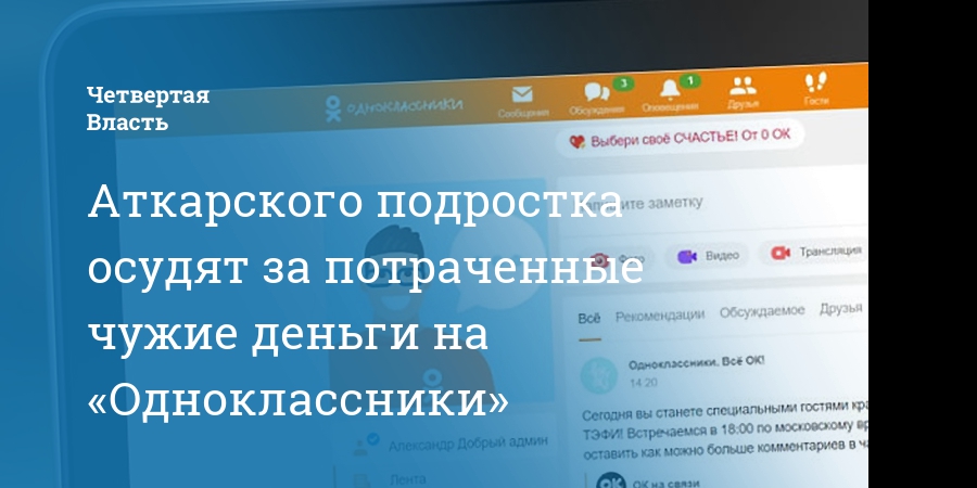 Аткарского подростка осудят за потраченные чужие деньги на «Одноклассники»