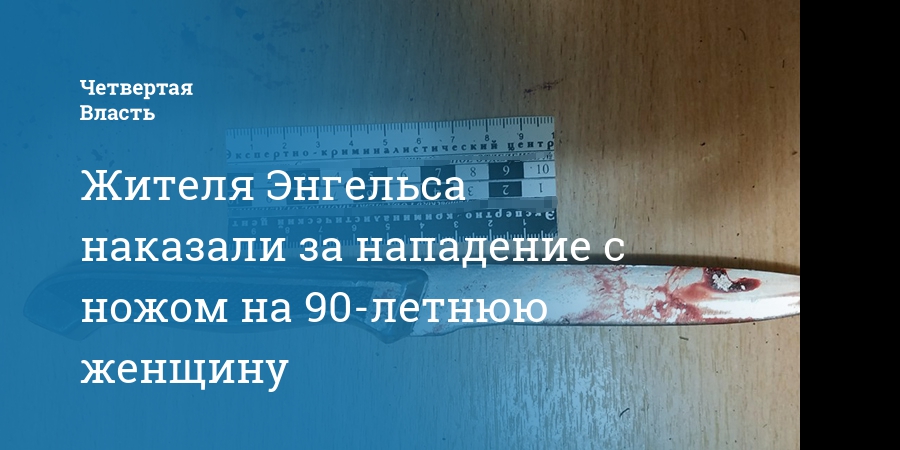 В Энгельсе Саратовской области вынесен приговор местному жителю 1974 г.р., который ранил ножом 90-летнюю женщину. Как сообщили в пресс-службе прокуратуры области, в результате нападения долгожительница получила тяжкий вред здоровью.