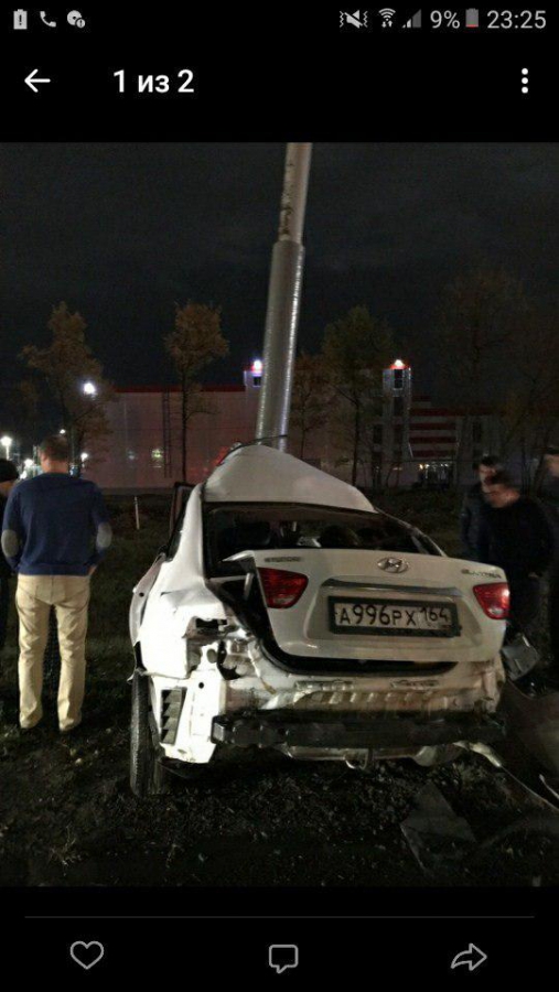 По предварительным сведениям, около 22.55 напротив дома №1Б по улице Усть-Курдюмской 30-летний водитель автомобиля «Хендэ Элантра» ехал по мокрому асфальту. Из-за высокой скорости он не справился с управлением, выехал в левую часть дороги и врезался в световую опору. В результате происшествия легковушку буквально намотало вокруг столба.