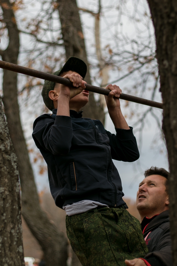 Кроме этого, ребятам предстояло преодолеть полосу препятствий, как можно быстрее надеть противогаз и разобрать-собрать автомат Калашникова, продемонстрировать физическую подготовку с элементами отжимания на руках и подтягивания и оказать медицинскую помощь условному пострадавшему.