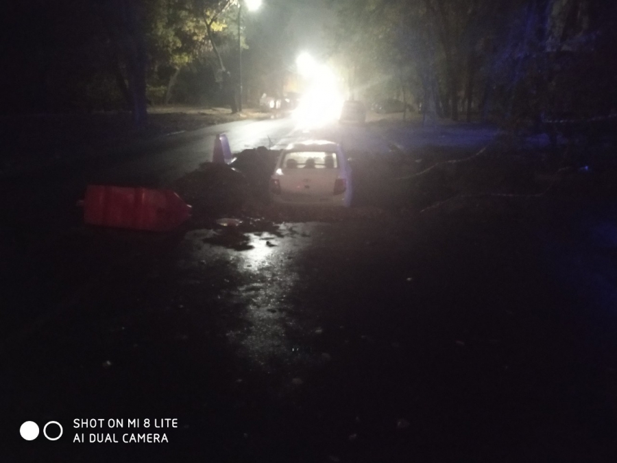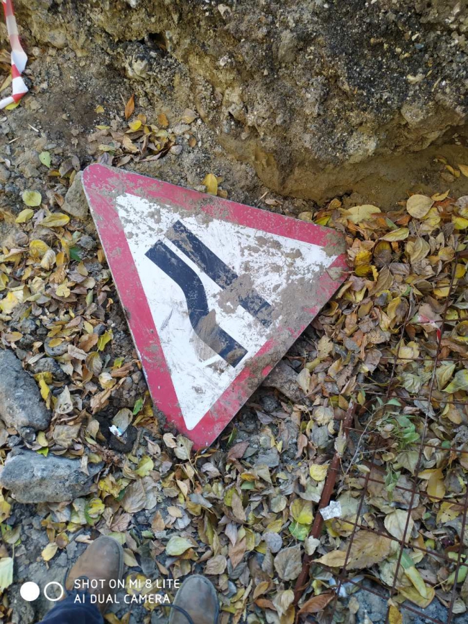 Мужчина увидел, что разрытый участок отмечен лишь двумя водоналивными (пустыми) ограничителями и полоской сигнальной ленты, а также дорожным знаком, оповещающим о сужении дороги (после ДТП он оказался на дне ямы). Сейчас количество барьеров увеличено, появилось больше сигнальной ленты, а также знак «Опасная зона» (дорожным он не считается). Так что по-прежнему участок является потенциально опасным в вечернее и ночное время.