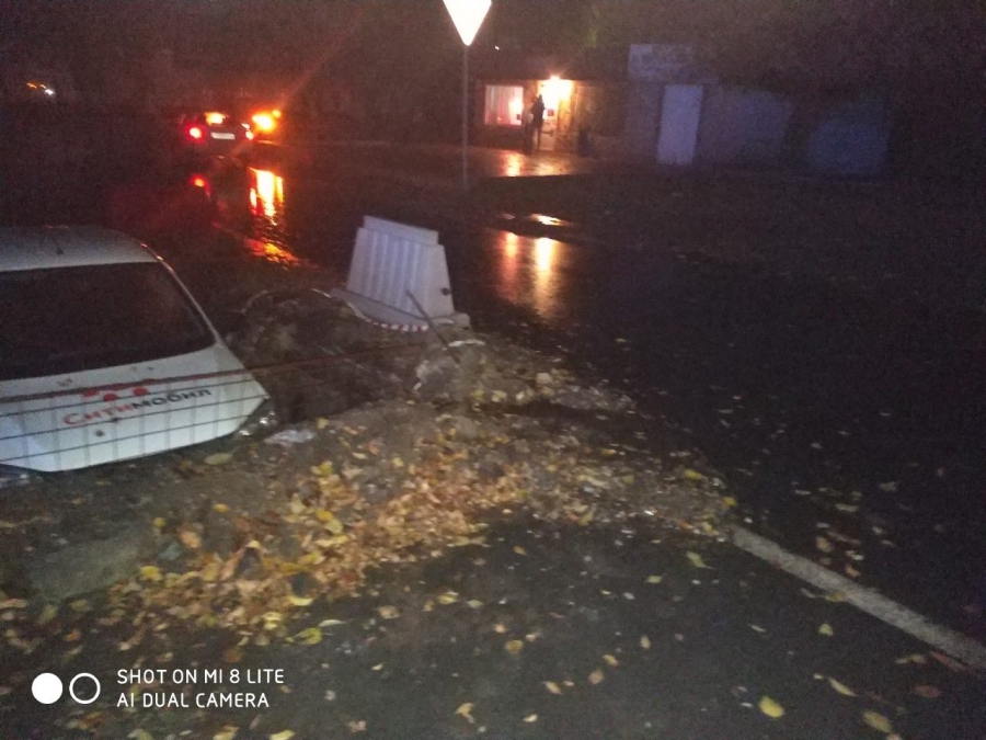 В этом году на территории города автомобили неоднократно проваливались в дорожные ямы, которые вырыли коммунальщики. Например, в августе на улице Сакко и Ванцетти в траншею упал «Сузуки», а в сентябре на Зарубина провалилась «Лада» (тоже с эмблемой такси).
