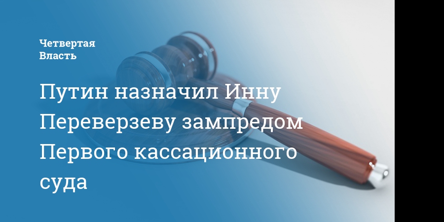 Президент России Владимир Путин назначил заместителя председателя Первого кассационного суда общей юрисдикции. Согласно тексту указа, им стала Инна Переверзева, срок ее полномочий - 6 лет.