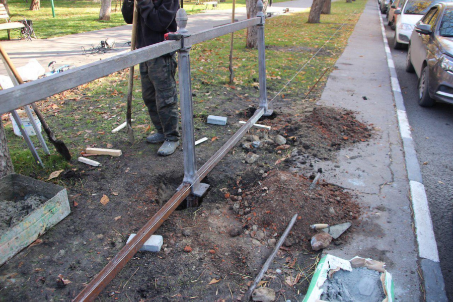 На вопрос журналиста к представителям подрядной организации, почему ограду устанавливают именно в этом месте, они ответили, что это связано с последствиями демонтажа.