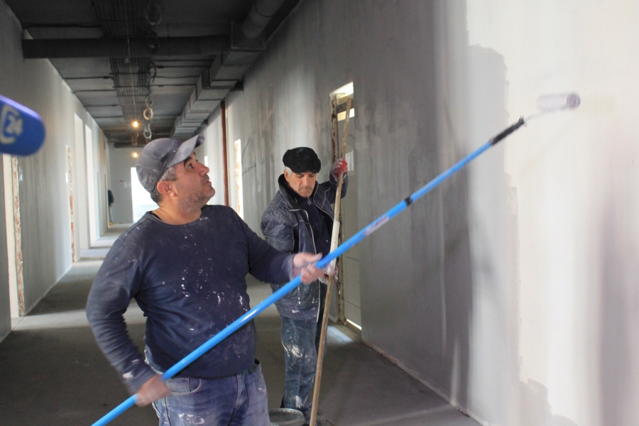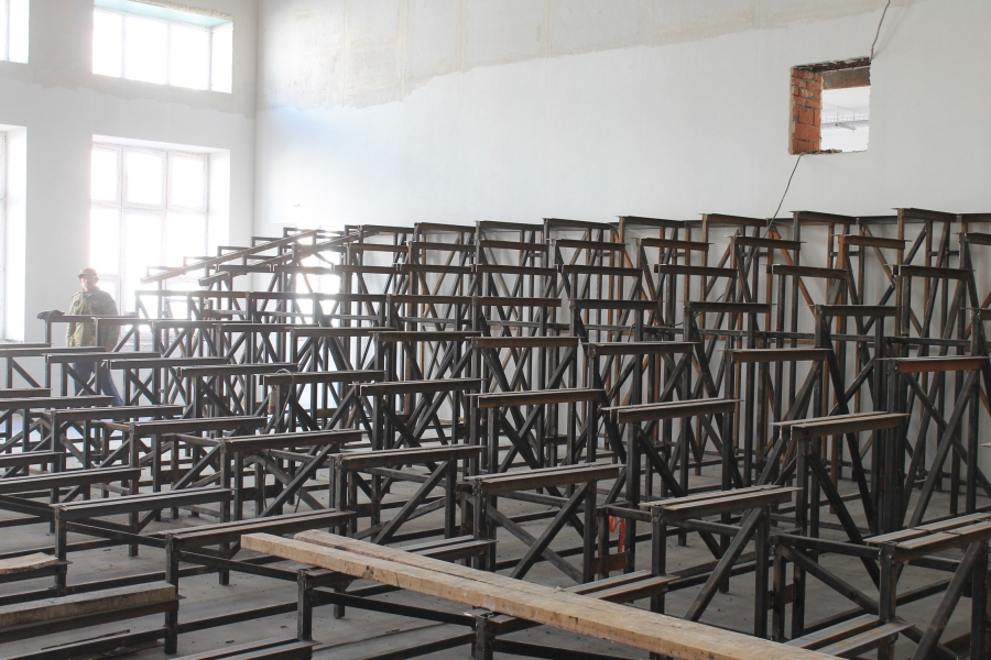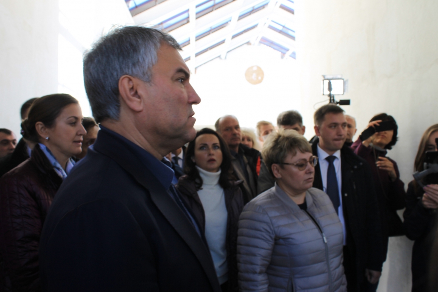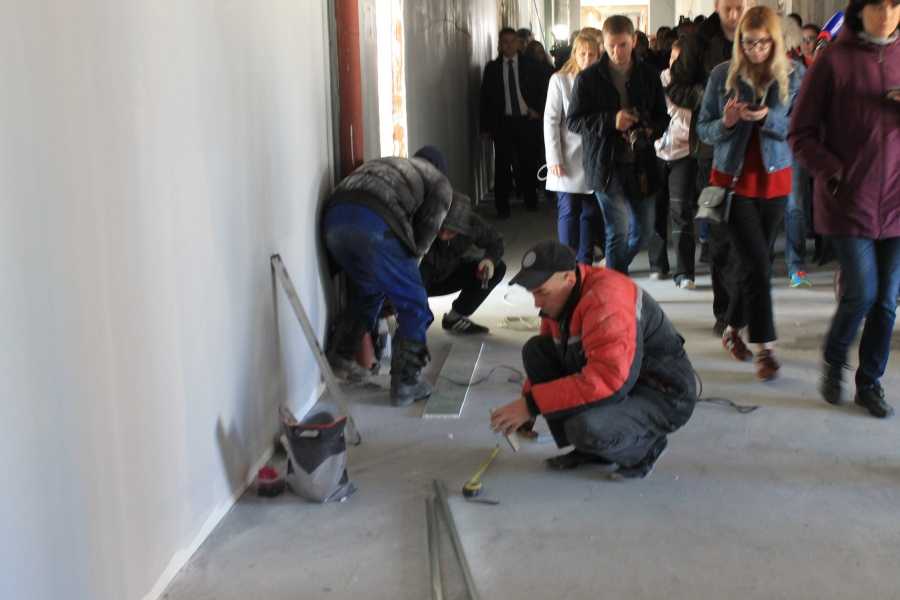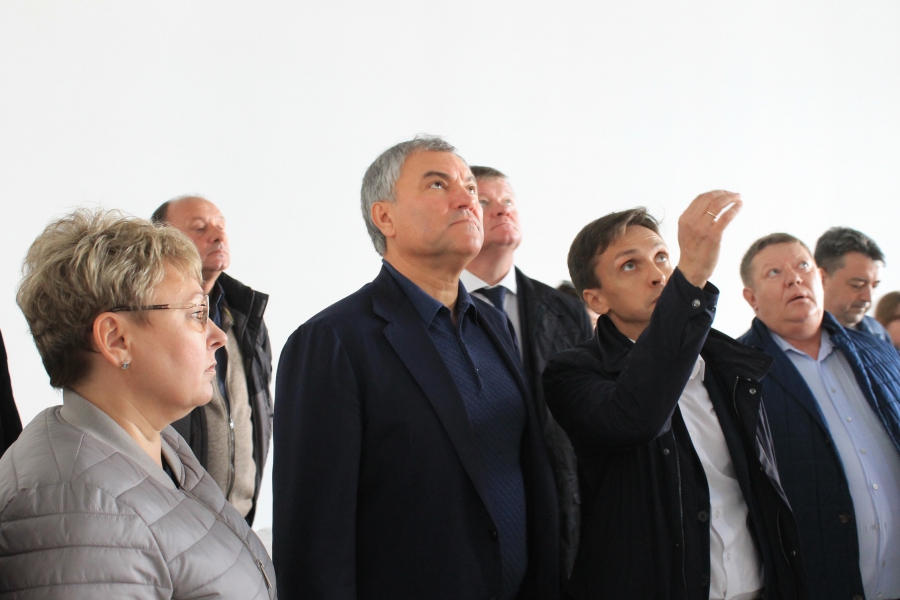 Володин ознакомился с ходом работ на объекте. В настоящее время в учебном корпусе образовательного учреждения продолжается отделка, почти полностью нанесена штукатурка. Продолжаются работы в общежитии, строят и переход между зданиями.
