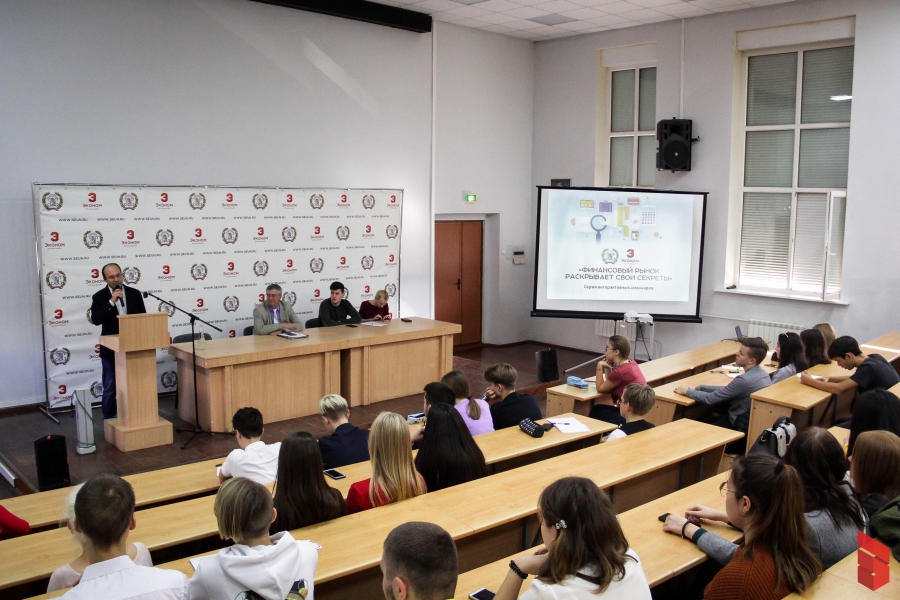 C началом нового учебного года в Саратовском социально-экономическом институте РЭУ им. Г.В. Плеханова возобновлена реализация просветительского проекта для учащихся школ Саратова и Энгельса, колледжей, студентов вуза, включающего в себя серию интерактивных семинаров «Финансовый рынок раскрывает свои секреты».