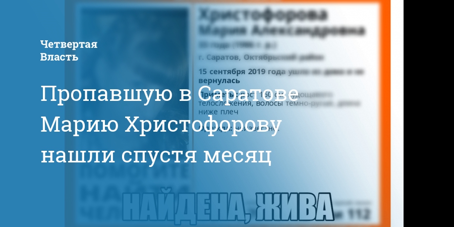 Пропавшую в Саратове Марию Христофорову нашли спустя месяц