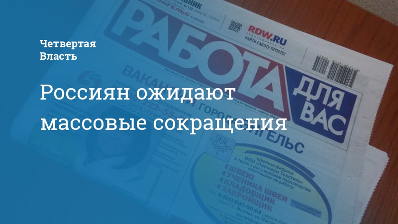 В 2020 году Россию ждут массовые сокращения. Людей будут увольнять в каждой десятой компании. Об этом сообщают аналитики сайта HeadHunter, опросив работодателей.