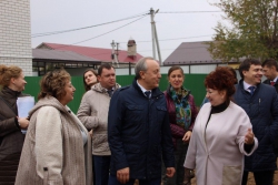 Радаев поинтересовался у застройщика о планах по благоустройству вокруг детского сада. Также он удивился нестандартной планировке учреждения: необычное расположение окон и узкие коридоры. К зданию не подведено централизованное водоснабжение и отопление. Местные жители используют воду из частных скважин, также придется поступить и в детском саду.