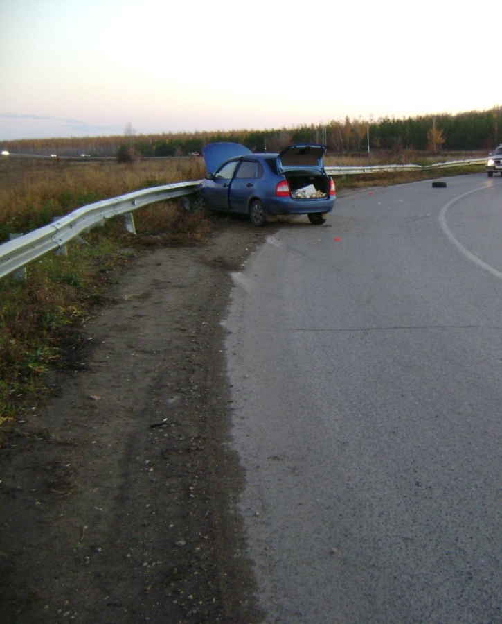 Два человека пострадали в столкновении «Калины» с дорожным ограждением