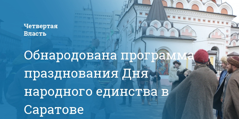В Саратовской области пройдет серия мероприятий, посвященных Дню народного единства. Праздничную программу опубликовало министерство внутренней политики и общественных отношений области.