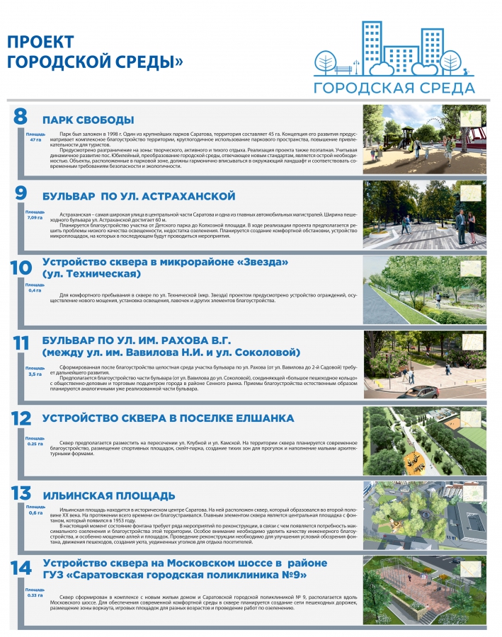 В 2020 году в Саратове ожидается реализация приоритетного проекта «Формирование комфортной городской среды», в рамках которого одна из общественных территорий будет благоустроена.