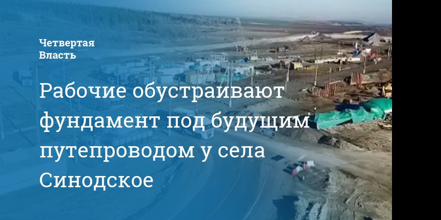 Рабочие обустраивают фундамент под будущим путепроводом у села Синодское