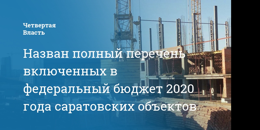 Назван полный перечень включенных в федеральный бюджет 2020 года саратовских объектов