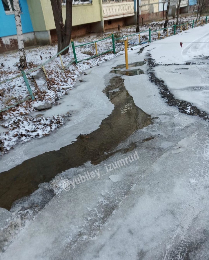 Так, в Юбилейном образовались замерзшие реки у дома №7Д по улице Усть-Курдюмской и тянутся вдоль других зданий. При этом вода стоит во дворе, возможно, подтапливая подвал. Пешеходам и автомобилистам приходится нелегко, так как сложно передвигаться по ледяным волнам. Очевидцы отметили, что течь появилась еще 15 ноября.