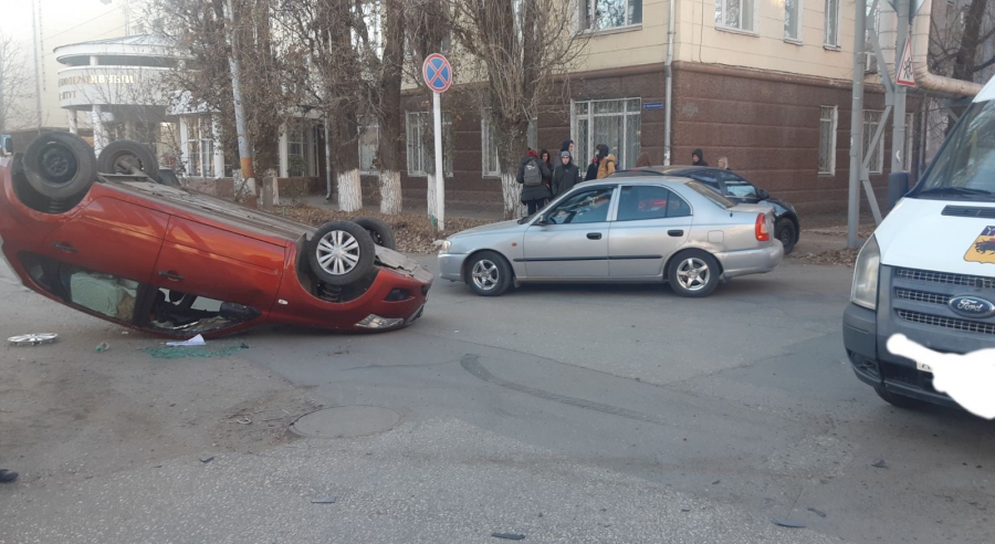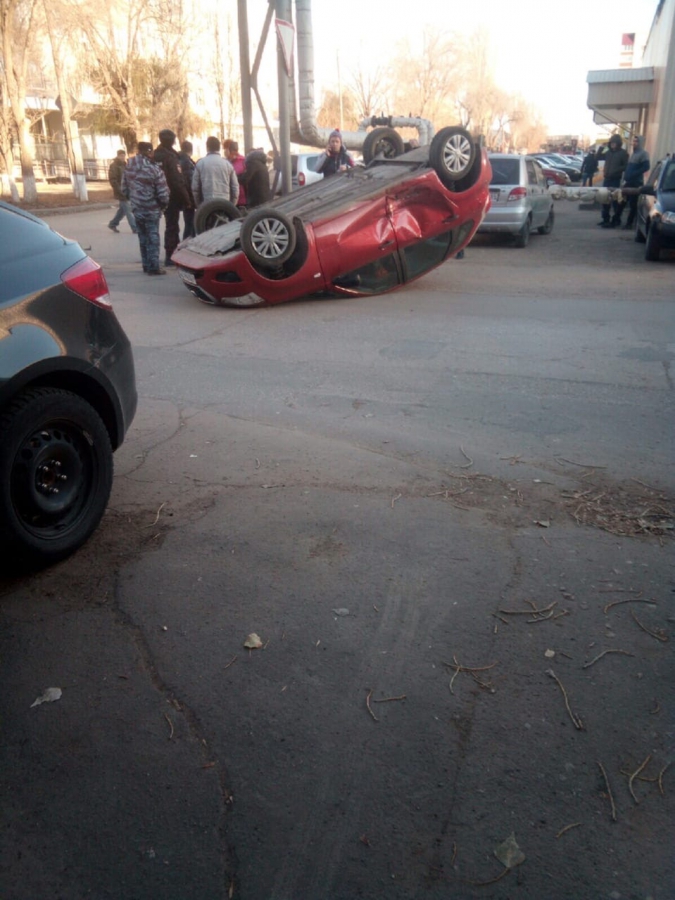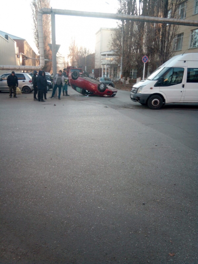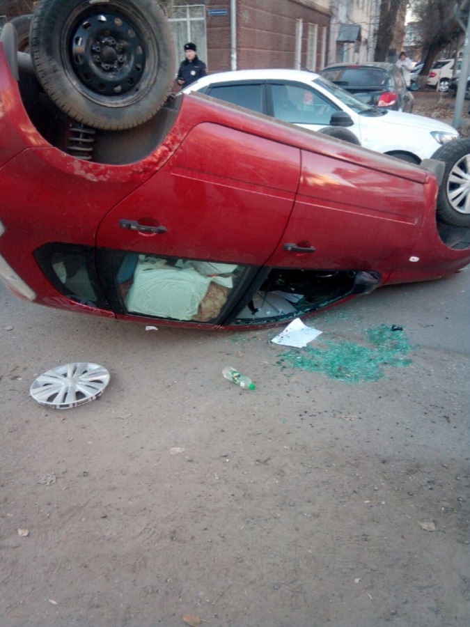 В Энгельсе красный «Датсун» с девушкой за рулем перевернулся после ДТП