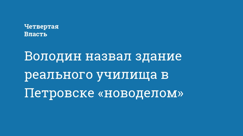 Председатель Государственной думы Вячеслав Володин поставил под сомнение завершение в срок внутренней отделки в бывшем здании реального училища в Петровске Саратовской области. Это выяснилось сегодня, 24 ноября, в ходе рабочего визита спикера.