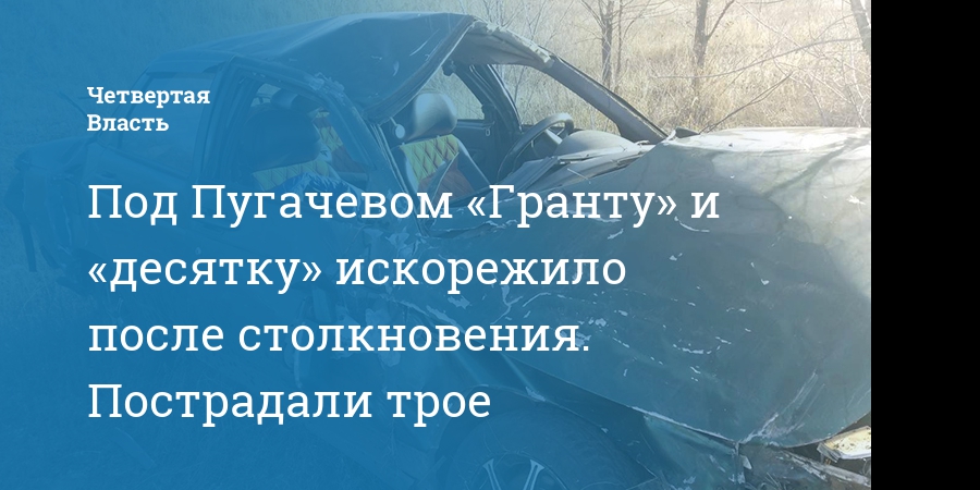 Под Пугачевом «Гранту» и «десятку» искорежило после столкновения. Пострадали трое