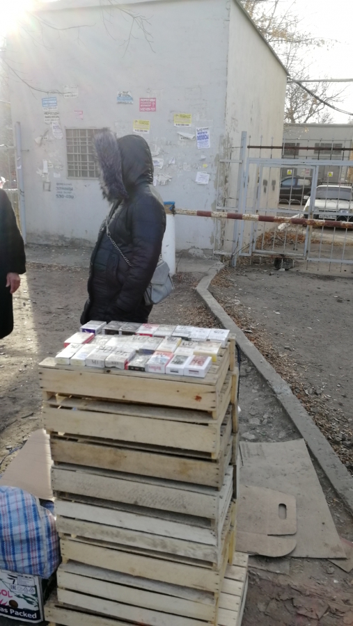 Речь идет об участке возле ярмарки на улице Пензенской, в районе пересечения с проспектом Энтузиастов (рядом с ТЦ «Оранжевый). По его словам, вдоль тротуара в открытую торгуют сигаретами, выложенными на конструкцию из деревянных ящиков. Очевидцы утверждают, что видели, как сигареты продавали даже подросткам. Причем раньше это делалось скромно: пачка выкладывалась на «прилавок», остальное в сумке. Теперь продавцы стали наглее – там целая выставка из этих пачек.