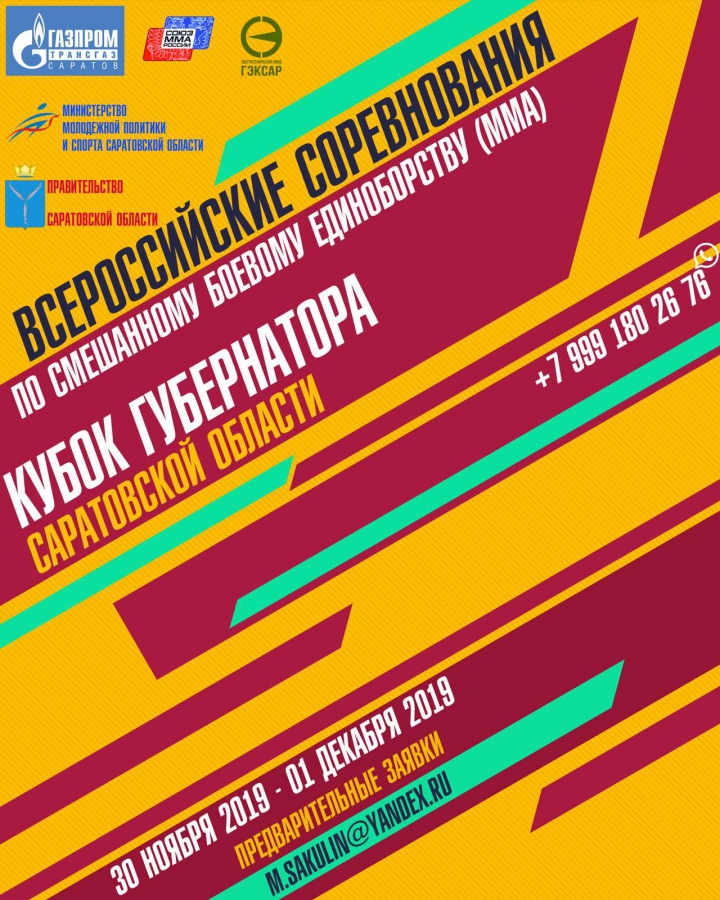 C 30 ноября по 1 декабря в Саратове состоятся Всероссийские соревнования по смешанному боевому единоборству (ММА). Место проведения турнира - ФОК «Звездный» (ул. Большая Затонская, 3Б).