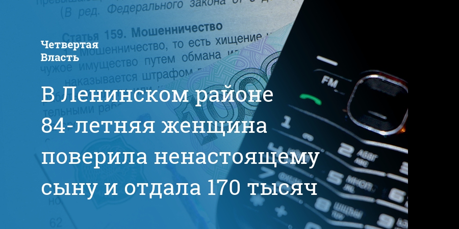 В Ленинском районе 84-летняя женщина поверила ненастоящему сыну и отдала 170 тысяч