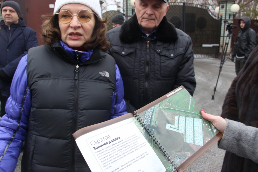 По словам собравшихся, поселок «Зеленая долина» заселился в 2013-2014 годах. История этой территории такова. В 2004 году администрация Саратова предоставила в аренду на 49 лет ГУП «ОПХ «Волга» земельный участок в поселке Зональный площадью порядка 49 тысяч кв.м., занимаемый землями сельскохозяйственного использования. После череды переуступок и разделения земли на 44 участка в ноябре 2012 года права на аренду земли перешли к ООО «Домострой». В марте 2013 года комитет по управлению имуществом и эта компания заключили соглашение, изменив вид разрешенного использования участков с «сельскохозяйственного использования» на земли «для строительства жилого дома с количеством этажей не более чем три, предназначенного для проживания одной семьи».
