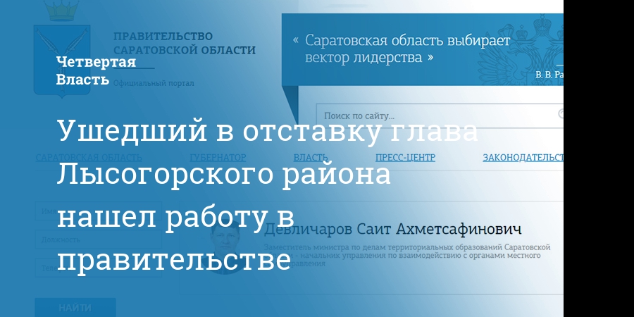 Саит Девличаров, который неделю назад уволился с поста главы Лысогорского района Саратовской области, трудоустроился в региональное правительство. Выяснилось, что теперь он будет в числе руководителей министерства по делам территориальных образований.
