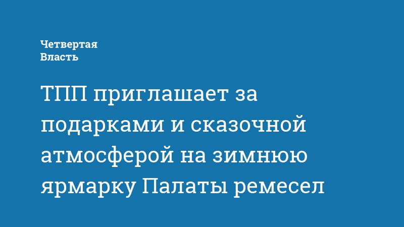 ТПП приглашает за подарками и сказочной атмосферой на зимнюю ярмарку Палаты ремесел