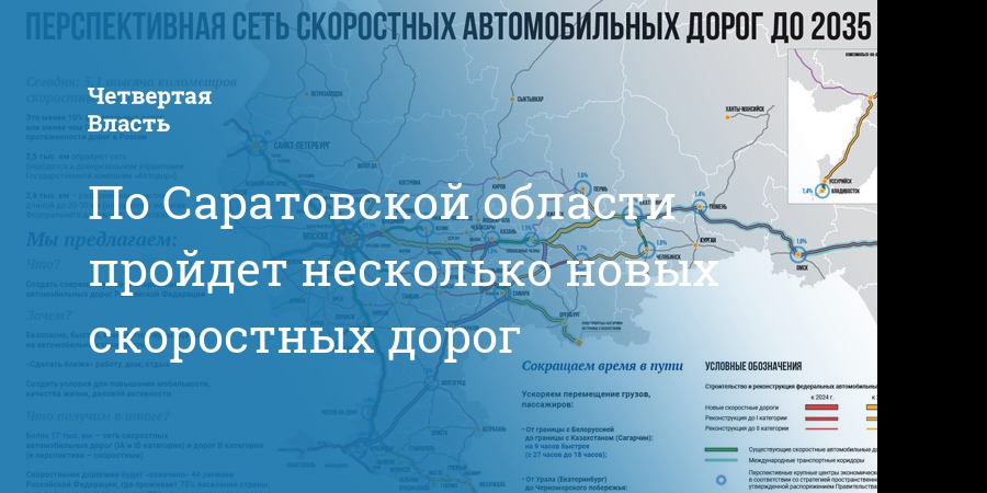 «Автодор» планирует к 2035 году реконструкцию дорог по направлениям Саратов-Тамбов-Орел-Смоленск-Псков-Санкт-Петербург, Саратов-Арзамас.