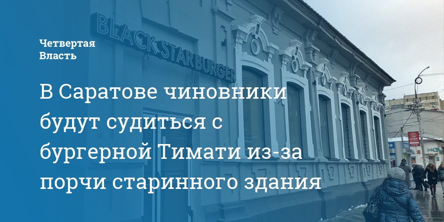В центре Саратова сеть бургерных рэпера Тимати под названием «Black Star Burger» намерена открыть заведение в историческом здании на улице Чапаева, построенном в 1890 году. Выяснилось, что здание, являющееся выявленным объектом культурного наследия, оказалось испорченным несогласованными работами. В управлении по охране культурного наследия правительства области заявили «Четвертой Власти», что намерены судиться в связи с этим инцидентом.