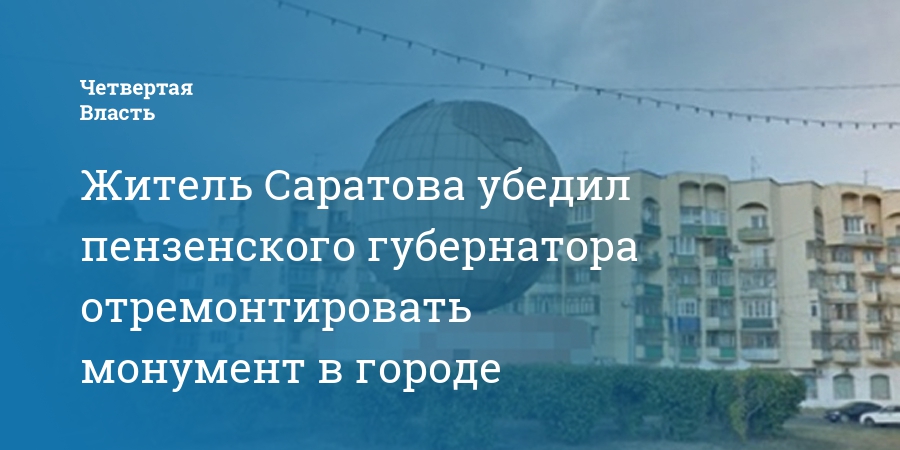 Некий житель Саратова обратился к губернатору Пензенской области Ивану Белозерцеву и пожаловался на неважное состояние монумента «Глобус», стоящего в Пензе. Об этом глава региона заявил сегодня на планерке, сообщает SMI58.ru.