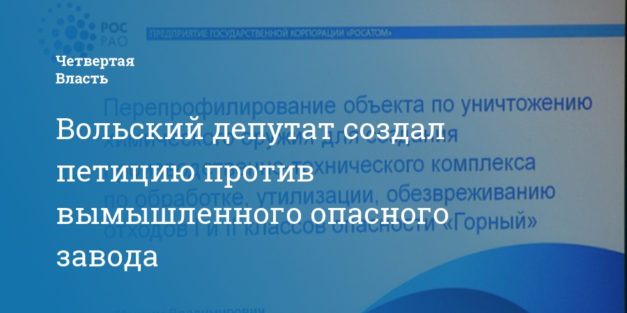 Депутат Вольской городской думы Сергей Ашихмин опубликовал петицию против вымышленных планов по захоронению ядерных отходов на заводе в поселке Горном. Соответствующий документ опубликован на сайте change.org.
