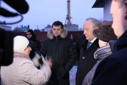 Губернатор поздравил жильцов с обретенными квадратными метрами и с наступающим Новым годом.
