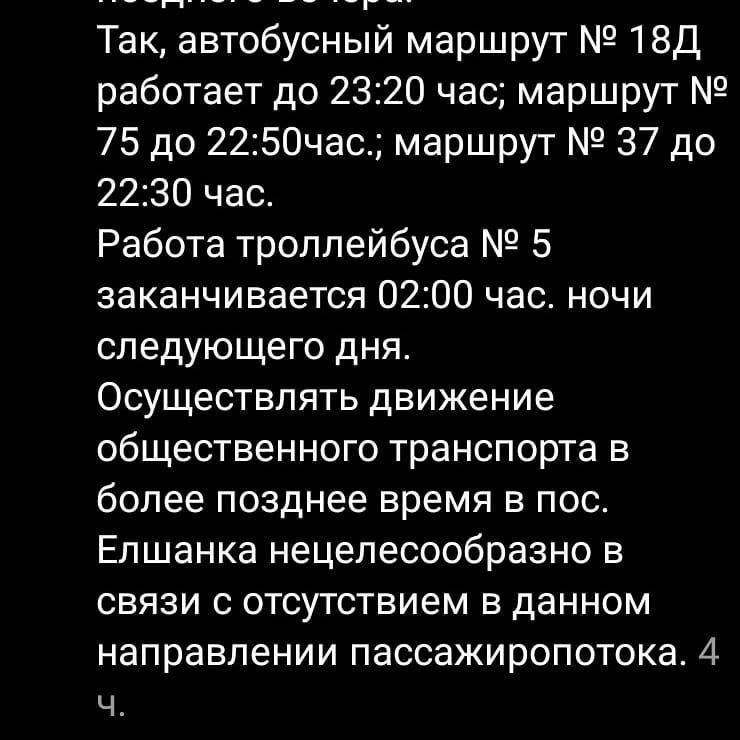 Осуществлять движение общественного транспорта в более позднее время в пос. Елшанка нецелесообразно в связи с отсутствием в данном направлении пассажиропотока», - написали сотрудники мэрии.