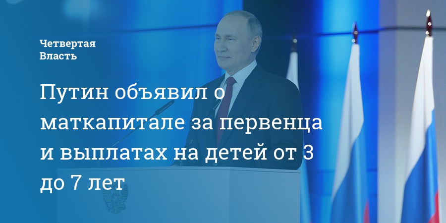 Путин объявил о маткапитале за первенца и выплатах на детей от 3 до 7 лет