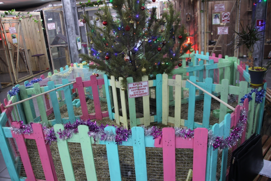 Остальные же братья наши меньшие находятся в своих клетках на чистой соломенной и опилочной подстилке. Кто-то мирно спит, кто-то играет с посетителями. К слову, прикасаться к животным можно исключительно под присмотром сотрудника зоопарка.