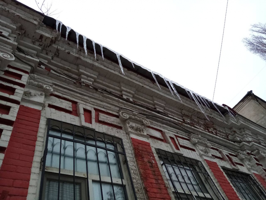 На здании Общественной палаты Саратовской области нависли сосульки. Они угрожают людям, идущим по улице Яблочкова в районе дома №14.