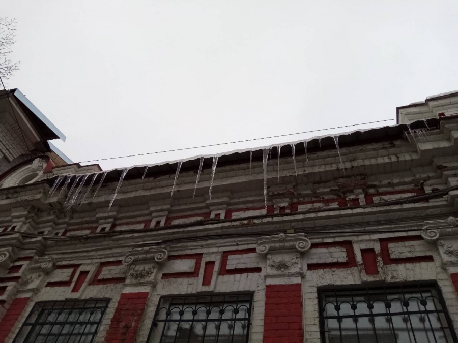 Гостей Общественной палаты встречают крупные сосульки на крыше