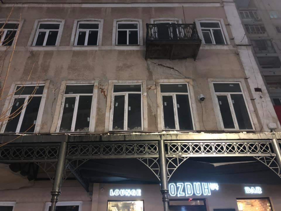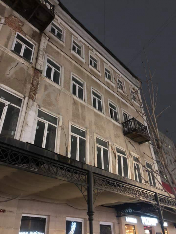 На приложенных к посту фотографиях заметно несколько крупных трещин на разных участках фасада.