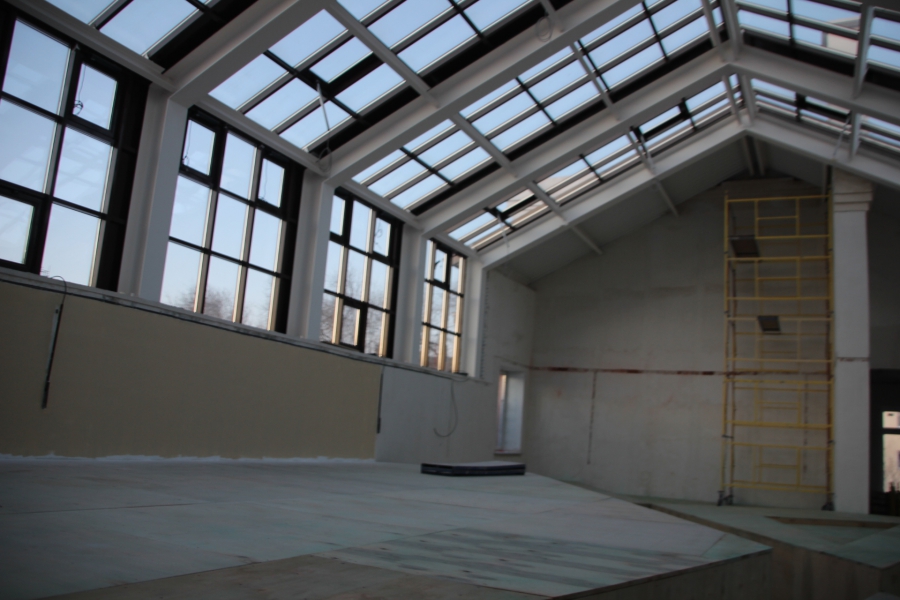 На данный момент в учебном корпусе ведутся отделочные работы. Ожидается, что основная часть работ завершится в марте. В апреле начнется подбор учителей, в мае будет проводиться благоустройство территории, в июне будут набирать учащихся. В сентябре этого года школа откроет свои двери для учеников.