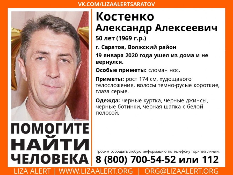 В Волжском районе Саратова пропал 50-летний Александр Костенко. Как сообщают волонтеры поискового отряда «Лиза Алерт», последний раз мужчину видели 19 января.