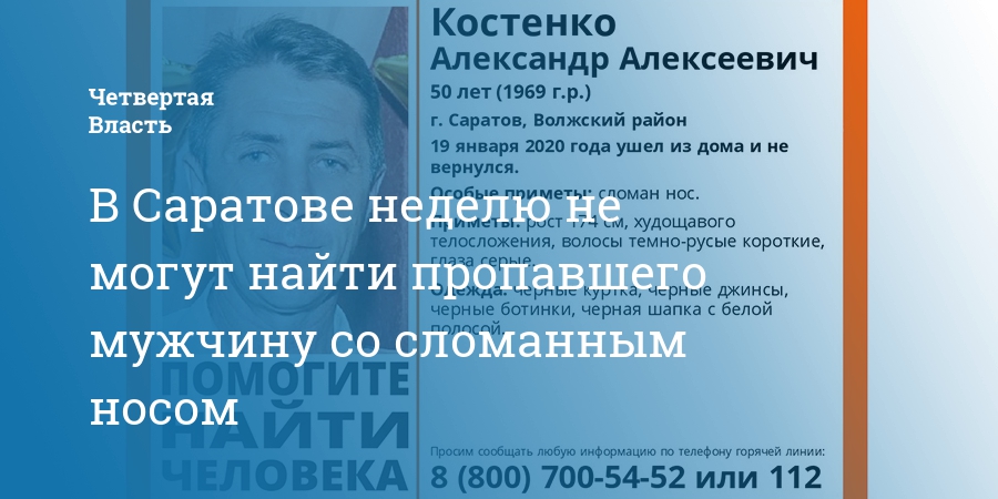 В Саратове неделю не могут найти пропавшего мужчину со сломанным носом