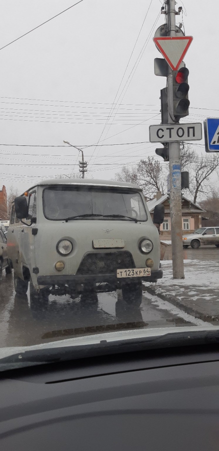 Судя по фотографии с места происшествия, это случилось на пересечении улиц Соколовая и Пугачева, неподалеку от Сенного рынка. На снимке видно, что «УАЗ» (буханка) стоит на проезжей части навстречу движению, рядом со светофором. Таким образом, водитель стал большой помехой, перекрыв целую полосу движения.