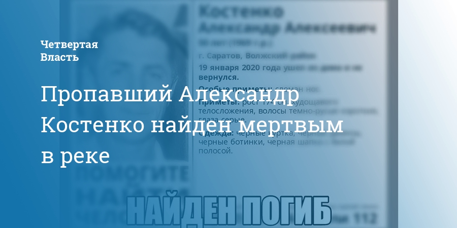 Между тем, по некоторым данным, тело Костенко обнаружили спасатели в районе СНТ «Южный факел» в микрорайоне Иволгино. Он пошел рыбачить на Волгу и несколько дней не выходил на связь, после чего к правоохранителям обратилась его супруга. Из особых примет указывалось, что у мужчины сломан нос.